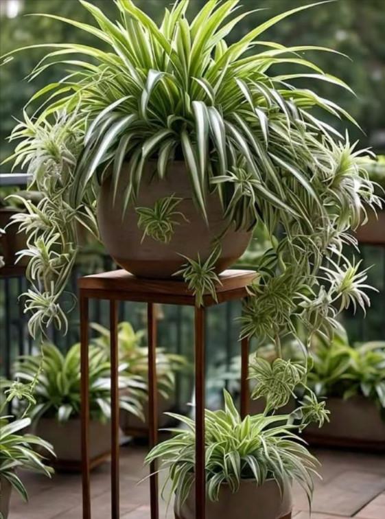 🌿 Chlorophytum comosum: en naturlig renseplante for hjemmet ditt. Bare én plante er nok til å absorbere giftstoffer og friske opp luften. Elegant og lettstelt, den vil forvandle ethvert rom til en oase av velvære. Chlorophytum comosum Planten stammer fra Sør-Afrika, og de kaskaderende bladene gir planten en beroligende karakter samtidig som den renser luften. Naturlig rensende kraft. Den fanger opp vanlige forurensninger (formaldehyd, benzen, karbonmonoksid) og frigjør oksygen gjennom fotosyntese.✨🍃